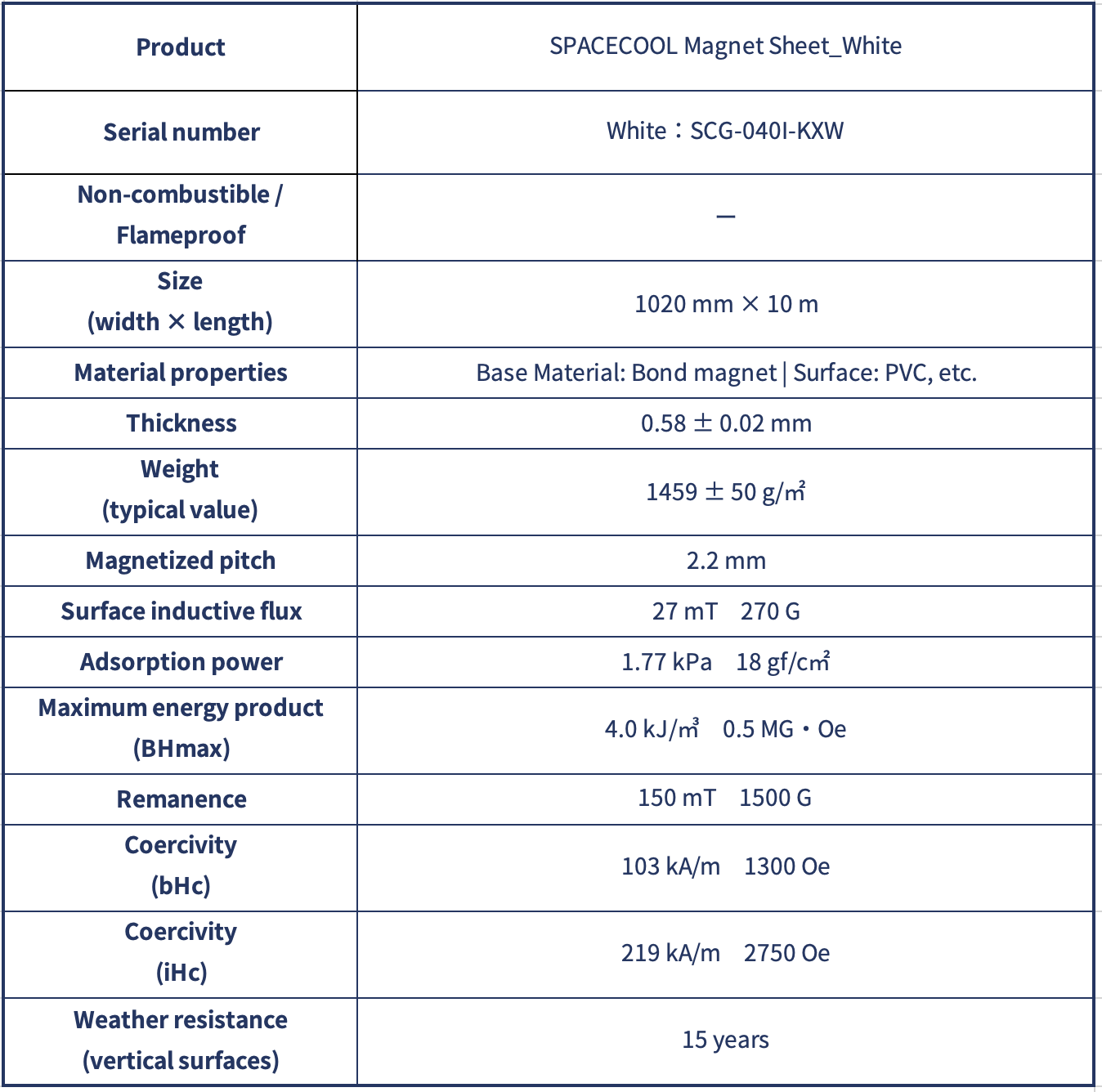 * The physical properties listed above are initial measured values and are not guaranteed values.