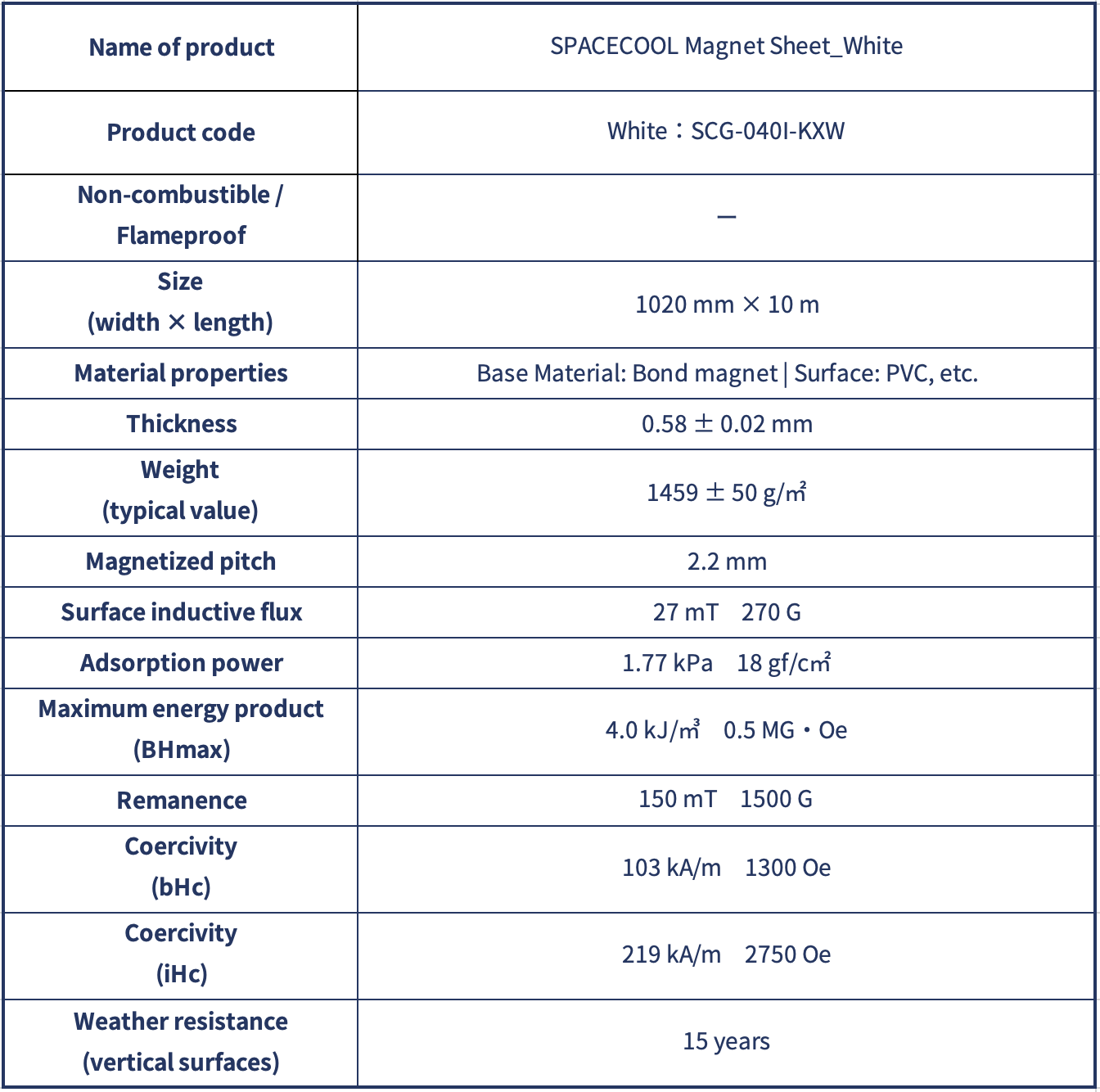 * The physical properties listed above are initial measured values and are not guaranteed values.