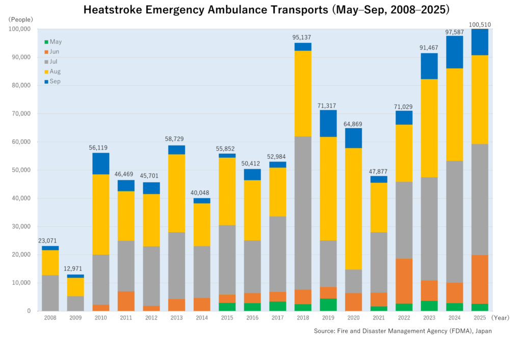 In Japan, data from the Japan Meteorological Agency (JMA) shows an increasing trend in extremely hot days (35°C or higher).