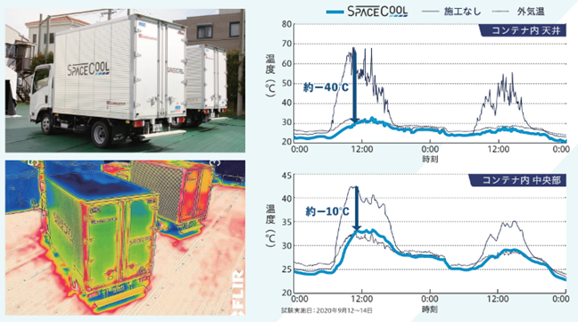 荷台部分へのSPACECOOL導入により、車内温度を約-5℃低下
